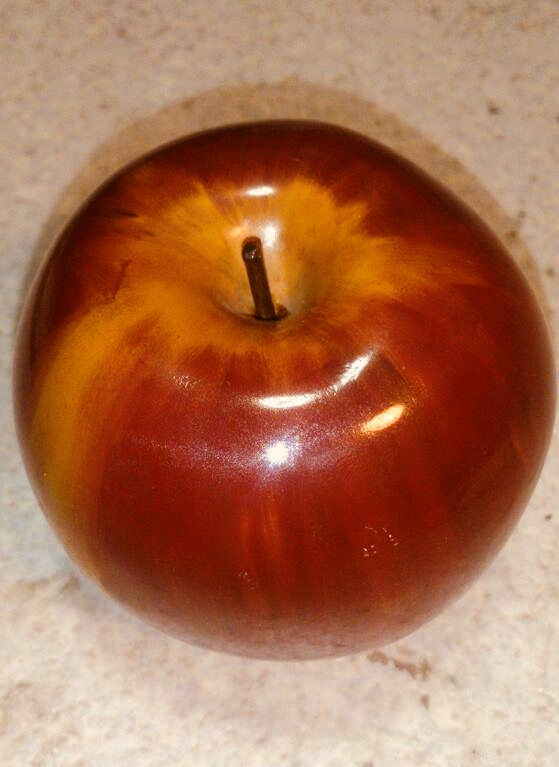 ガラスも、陶器も紙も、その他のモノで造られたリンゴも持っている。